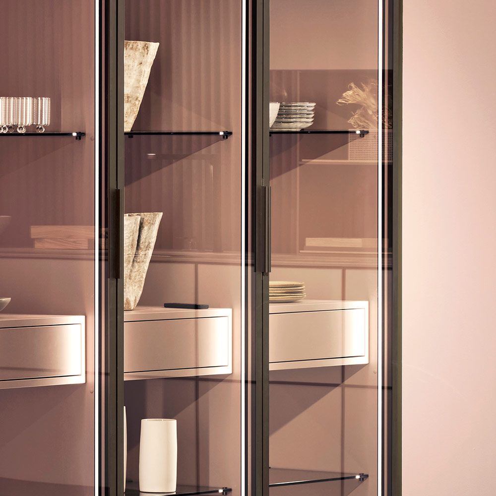 +MODO令人惊艳的是在空间维度上的设计理念。独特的网状纹理操作台与同色系柜体互相烘托,相得益彰。抽拉式置物架也充分体现了空间位移的概念。乔治·彭斯(Jorge Pensi)的设计理念清晰独特,操作台横跨底柜之上,呈漂浮状,再配以精美餐具和家居装饰,可自由演绎专属空间。